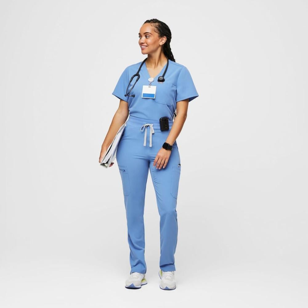 بنطلون مستقيم ومتناسق مع أحد عشر جيب، وحزام خصر مطاطي مع خيط.