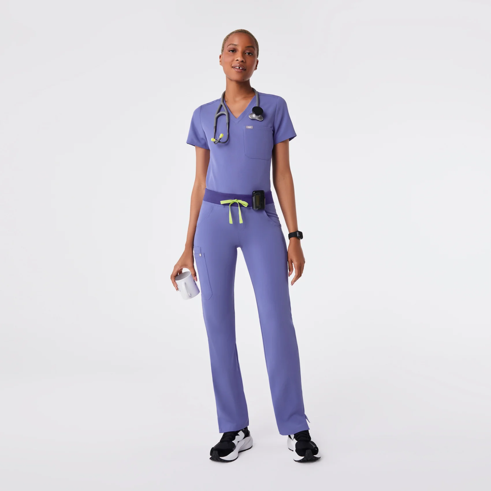 بنطلون بقصة متناسقة، أربعة جيوب وحزام خصر فائق الراحة.