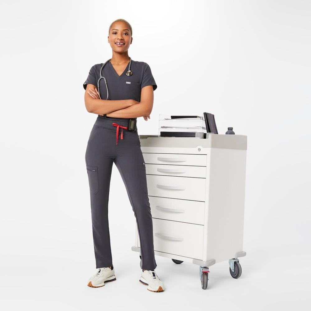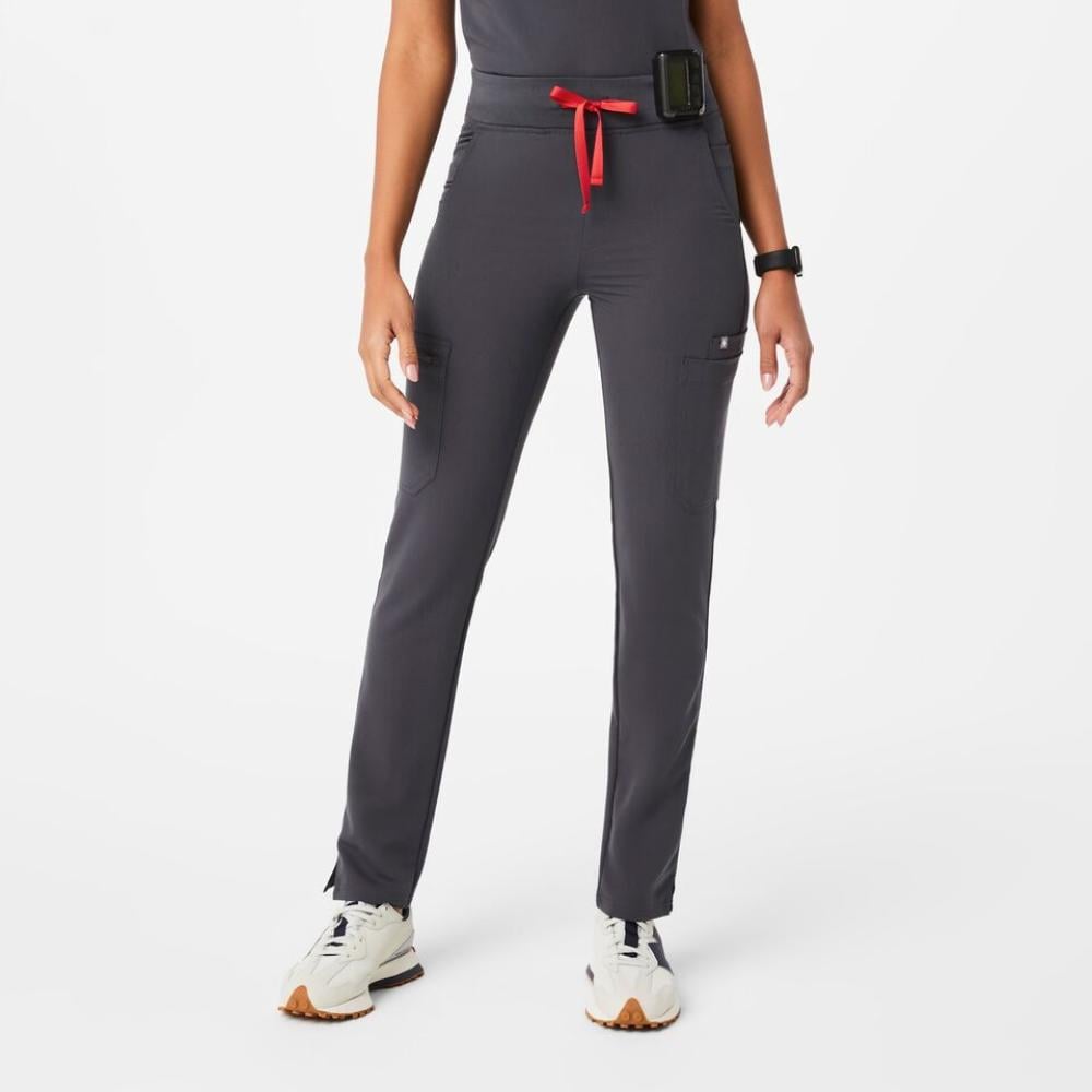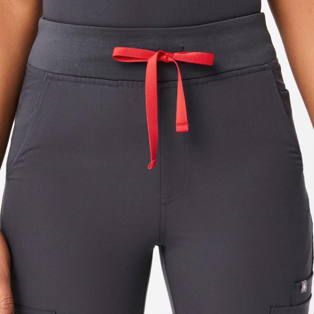 بنطلون مستقيم ومتناسق مع أحد عشر جيب، وحزام خصر مطاطي مع خيط.